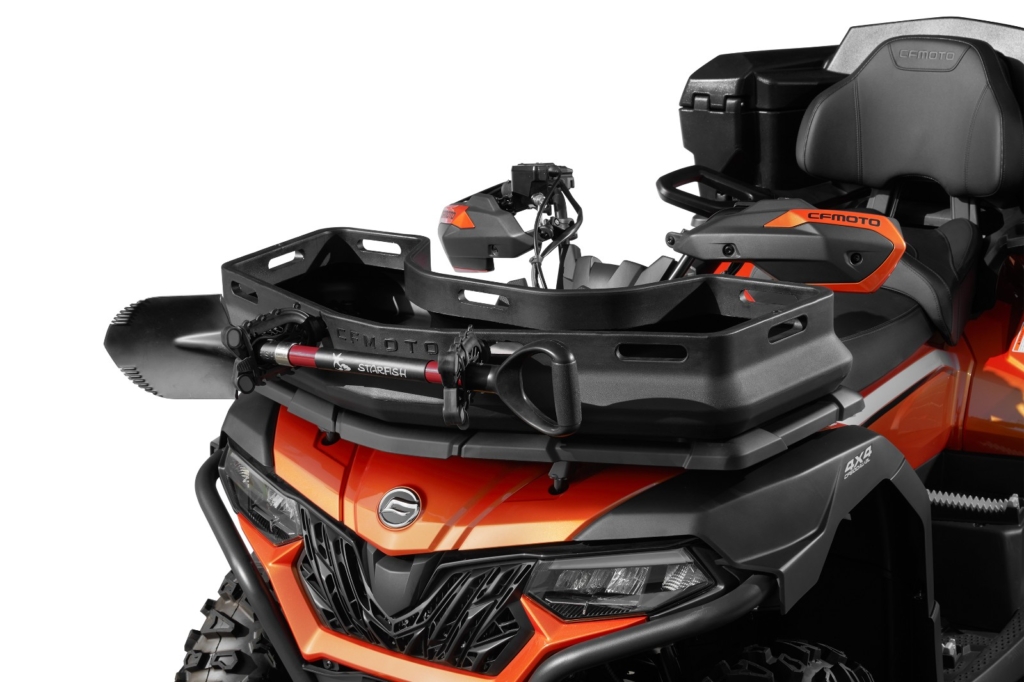 CFMOTO Gun Holder/Tool Support är perfekt för jägare, skogsarbetare och fritidsanvändare som behöver en säker och stabil lösning för att transportera utrustning på sin ATV.