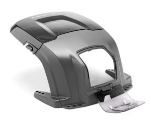 Huset är designat för att ge ett fullständigt skydd mot både regn och solljus, vilket förlänger livslängden och bevarar utseendet på din Automower®. Den uppfällbara huven gör det lätt att komma åt displayen och knappsatsen även när gräsklipparen laddas. Dessutom har huset en speciell kabellucka för enkel åtkomst till alla anslutningar.